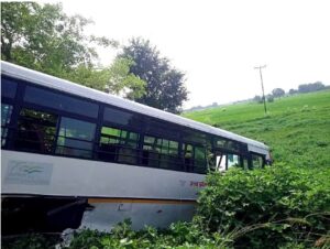 आजमगढ़ बरदह ट्रक से जोरदार टक्कर के बाद खाई मे गिरी बस