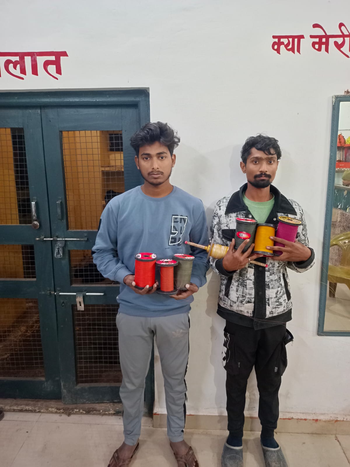 *जौनपुर।* पुलिस अधीक्षक डा० कौस्तुभ द्वारा चाइनीज मंझा के विरुद्ध चलाये जा रहे अभियान के दृष्टिगत अपर पुलिस अधीक्षक नगर व क्षेत्राधिकारी नगर के कुशल पर्यवेक्षेण एवं दिशा निर्देशन में तथा प्रभारी निरीक्षक थाना कोतवाली के नेतृत्व में आज दिनांक 07.01.2025 को चाइनीज मंझा के साथ दो अभियुक्त 1- अहमद सईद उर्फ सादिक पुत्र मो0 तरिक नि0 मखदुमशाह अढन थाना कोतवाली जौनपुर व 2- अंकित मौर्या पुत्र गनेश मौर्या नि0 सैयद अलीपुर थाना कोतवाली जौनपुर को 7 अंटा चाइनीज मंझा को साथ पकडा गया।