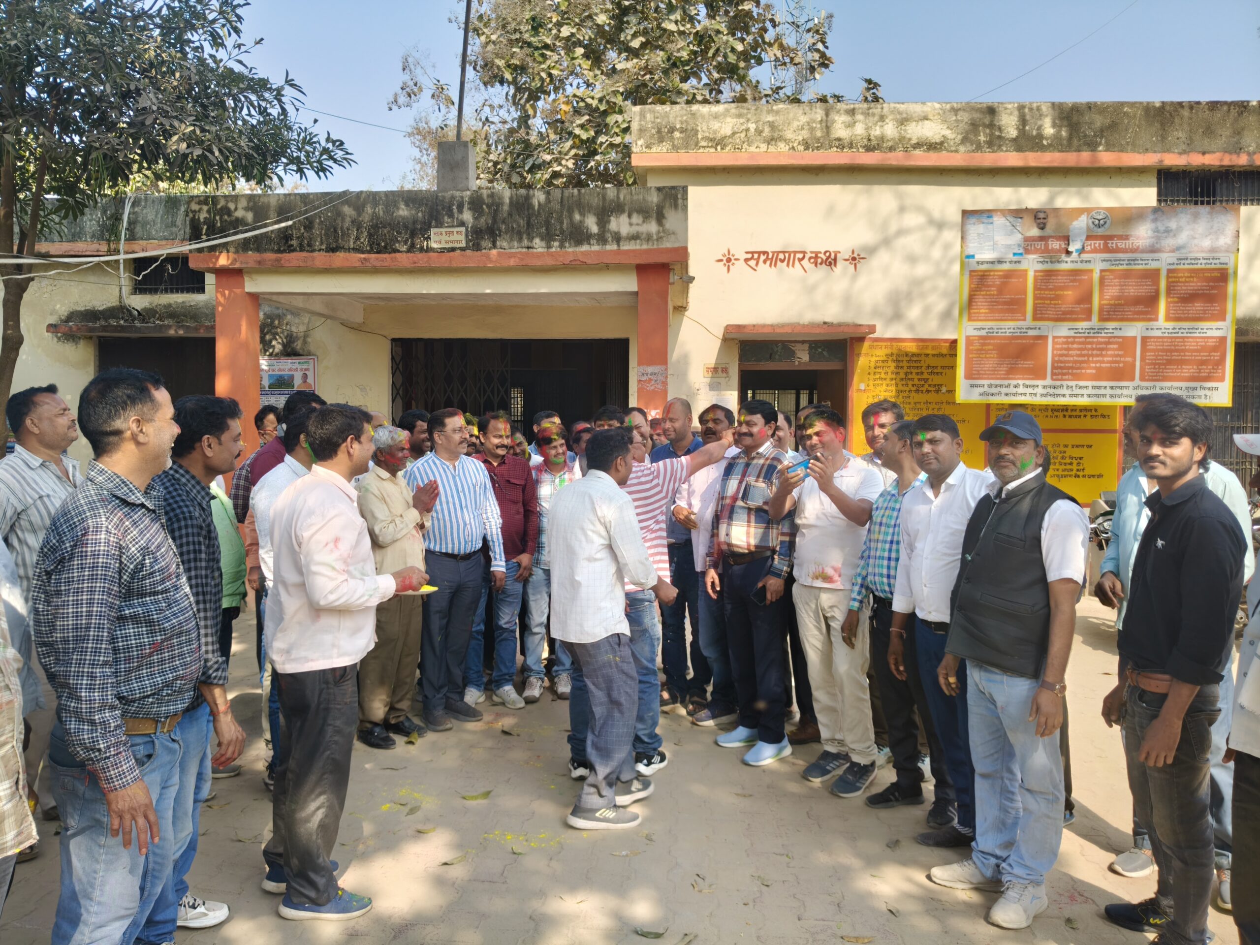 ब्लॉक परिसर में आयोजित इस सादगीपूर्ण होली मिलन समारोह में सभी ने एक-दूसरे के सुखद भविष्य की कामना की और आपसी सहयोग से कार्य करने का संकल्प लिया।