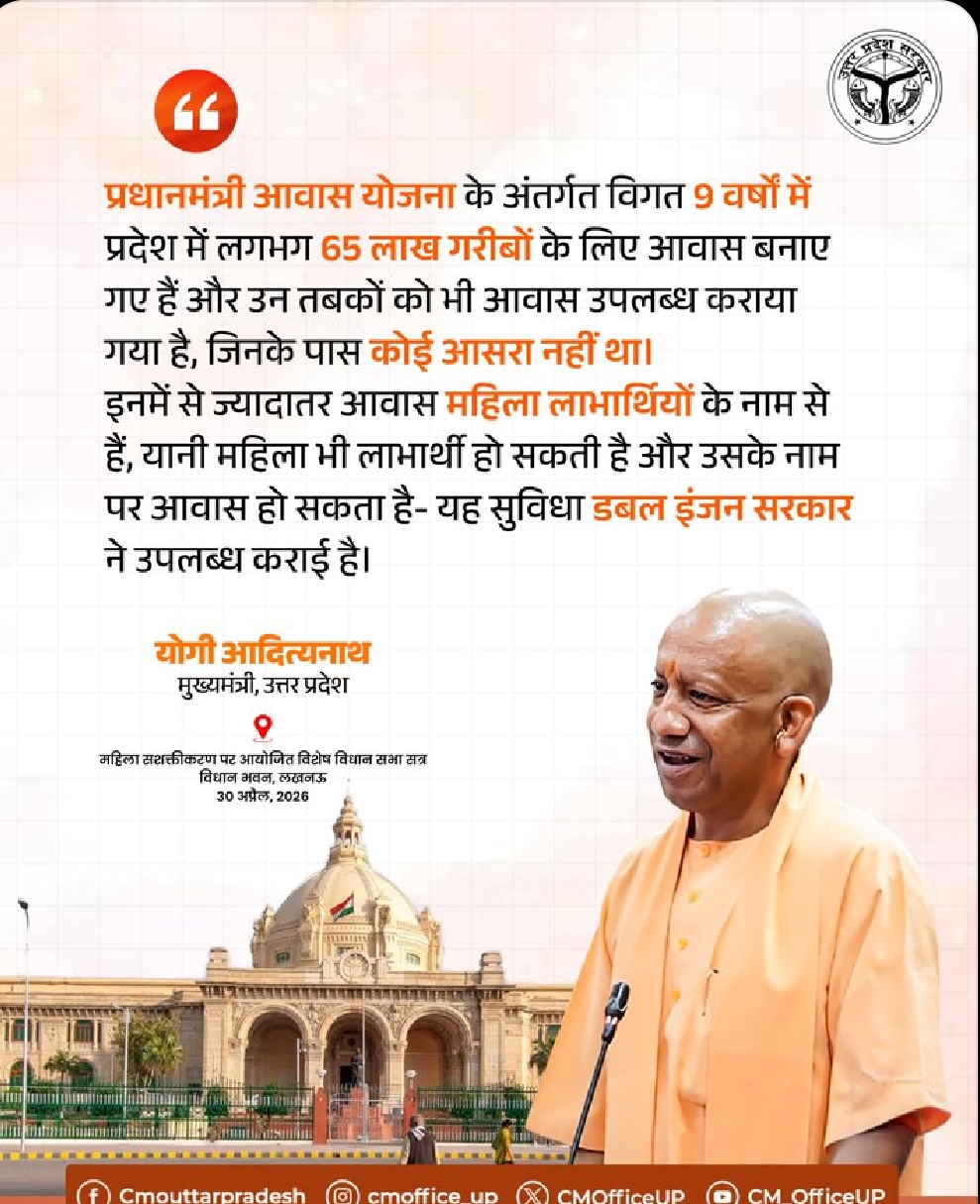9 वर्षों में 65 लाख गरीबों को मिला आवास, महिलाओं को मिला प्राथमिकता अधिकार: मुख्यमंत्री