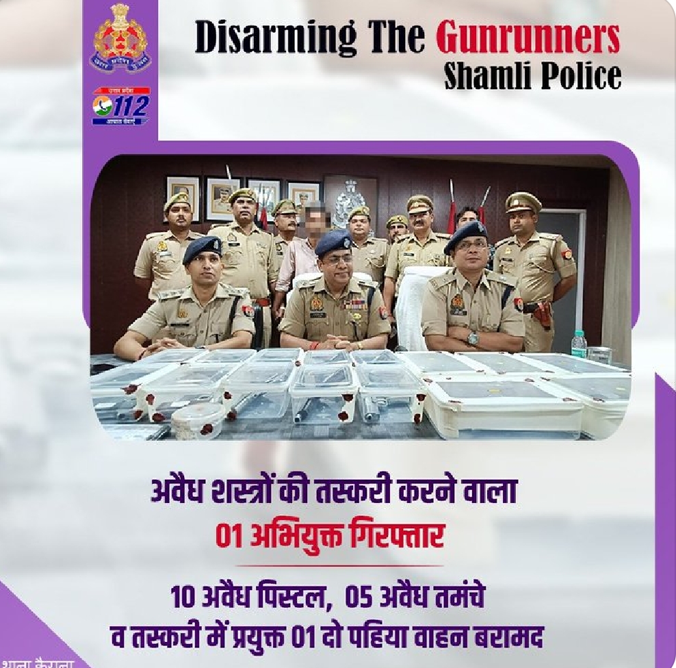 अपराध के प्रति जीरो टॉलरेंस नीति के तहत पुलिस को एक बड़ी सफलता हाथ लगी है। @PoliceShamli ने अंतर्राज्यीय स्तर पर अवैध शस्त्रों की तस्करी करने वाले एक शातिर अभियुक्त को गिरफ्तार किया है।