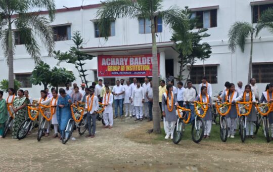 आचार्य बलदेव ग्रुप ऑफ़ इंस्टीट्यूशंस कोपा पतरही के प्रतिभाशाली बच्चों को साइकिल प्रदान कर उत्साह वर्धन किया गया ।